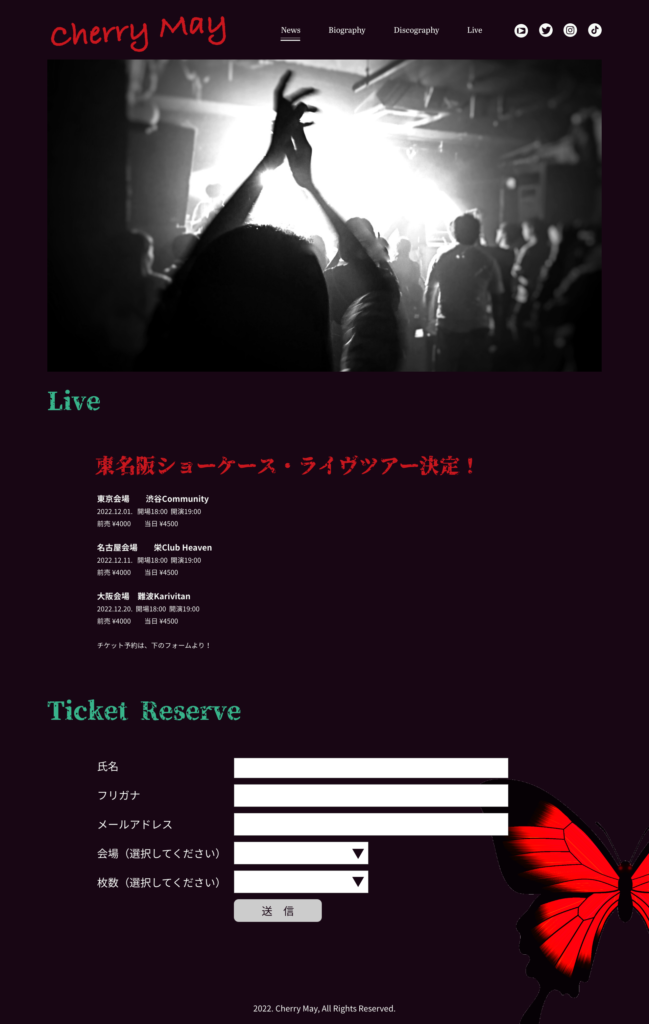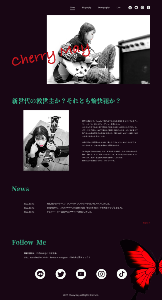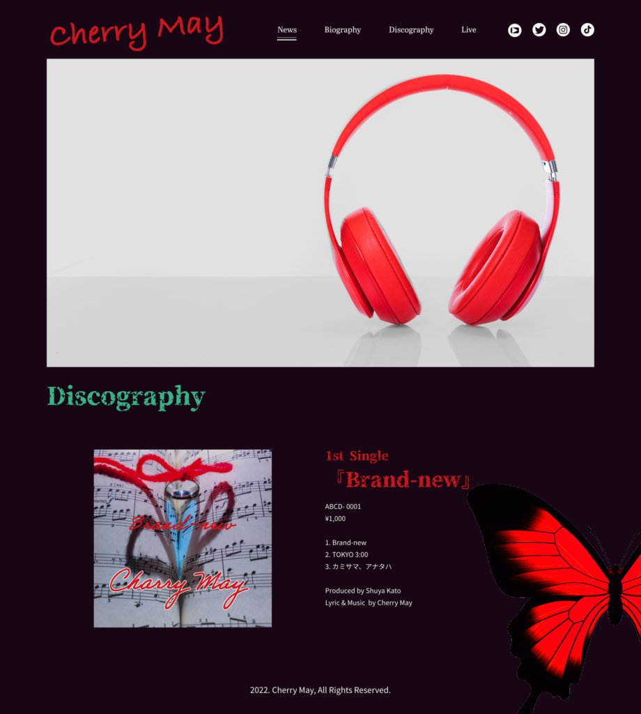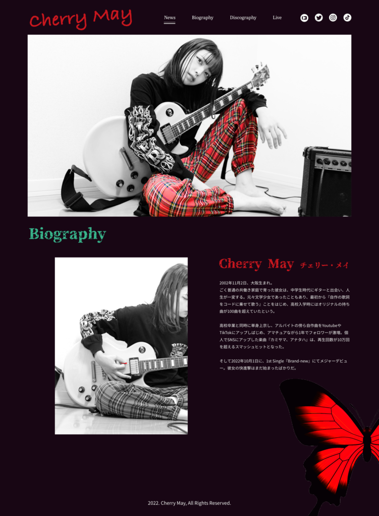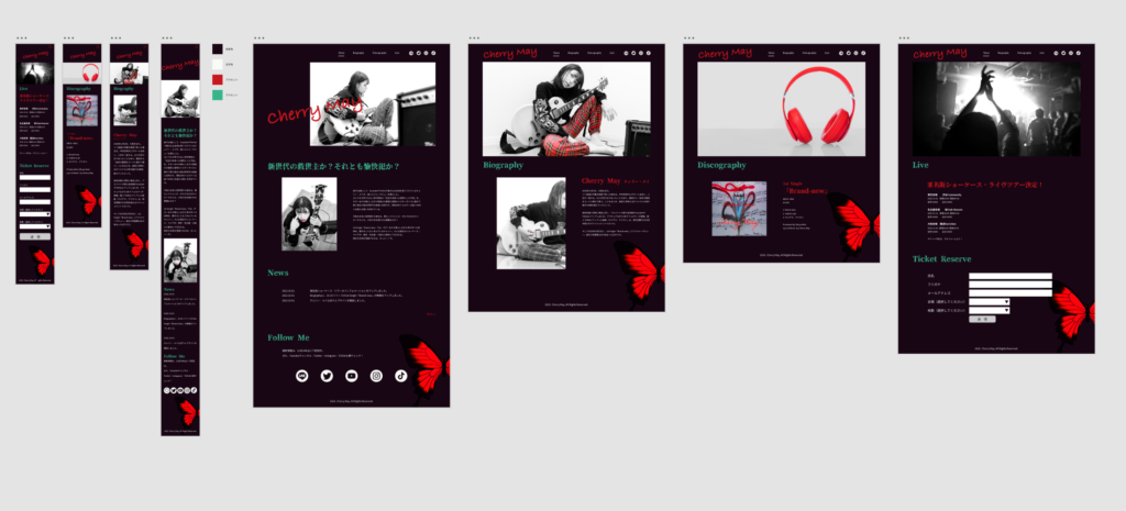 自主制作(架空のミュージシャンを設定し公式サイトのデザインを作成)。2022年9月制作(未公開)。